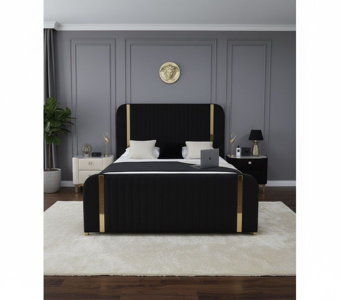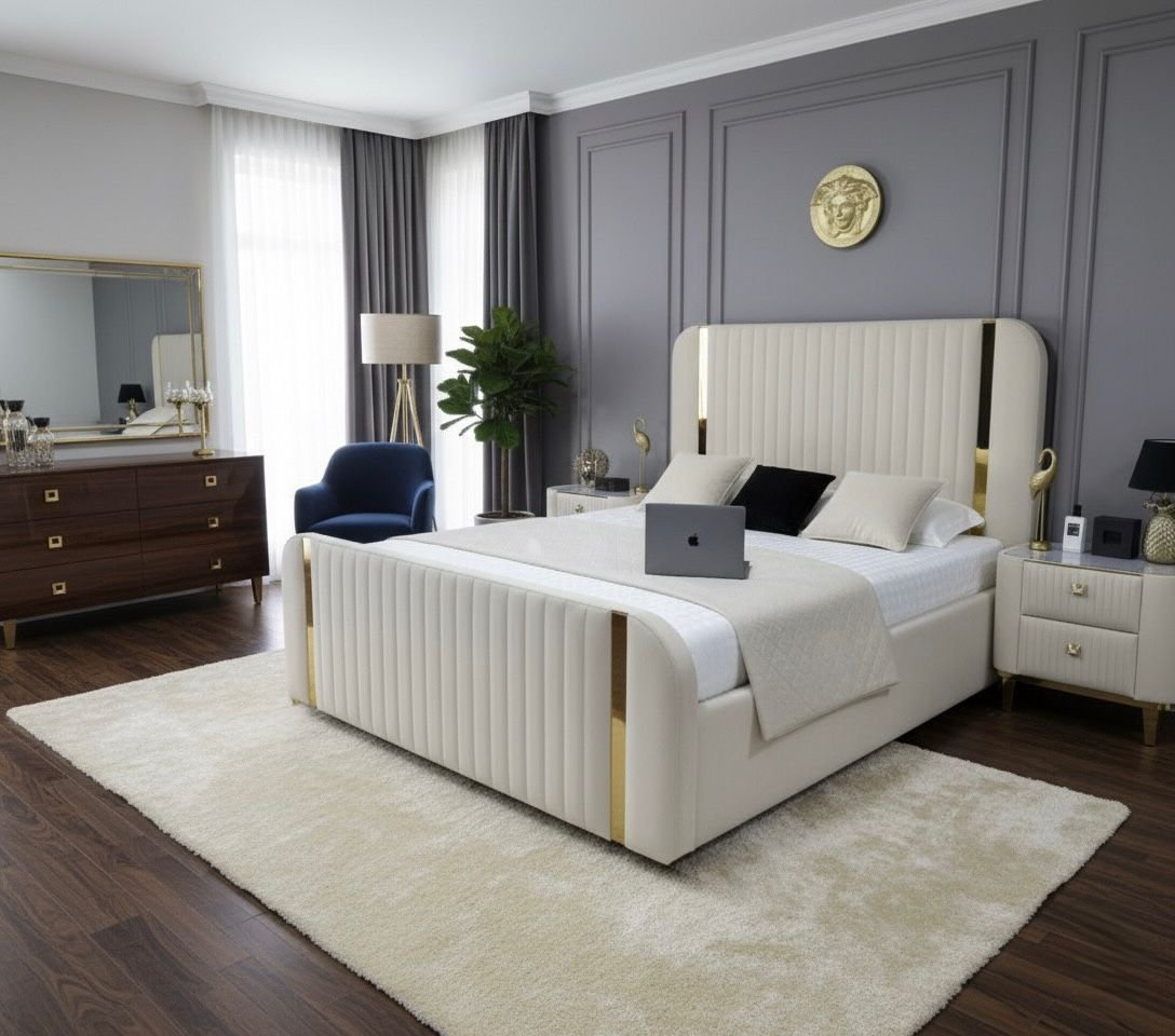 Expertly handcrafted in the UK using premium-grade timber and high-quality Turkish upholstery, this bed blends bold aesthetics with unmatched comfort. The striking panelled headboard and footboard, accented by a sleek gold stripe detail, create an aura of modern luxury that transforms any bedroom into a designer retreat.